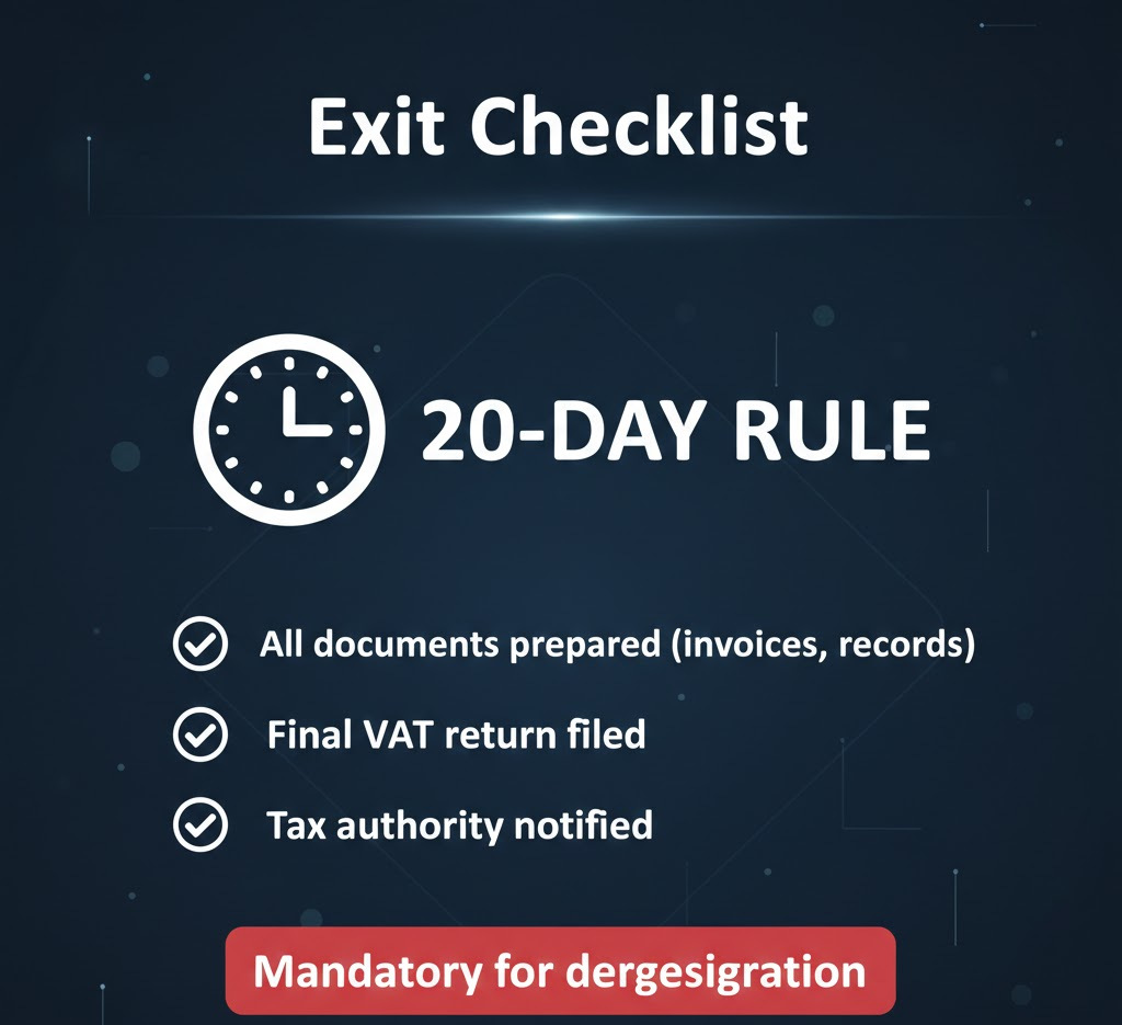Many businesses fail to realize that VAT de-registration must be applied for within 20 business days of becoming eligible. Missing this window results in a mandatory 10,000 AED fine. Accura Consultancy ensures your final tax period is reconciled, all outstanding liabilities are settled, and your application is submitted with the correct “Reason for De-registration” to ensure a smooth approval from the FTA.